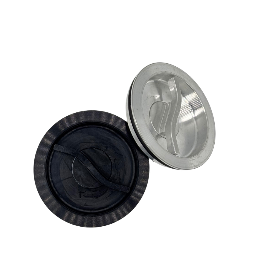 Realizzao dal pieno in alluminio ergal 7075, disponibili in vari colori con un trattamento di anodizzazione (nero, oro, argento, blu, rosso, viola, verde)